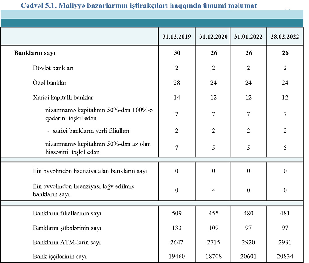 28 fevral 2022-ci il tarixinə olan bank sektorunun əsas göstəriciləri açıqlanıb.