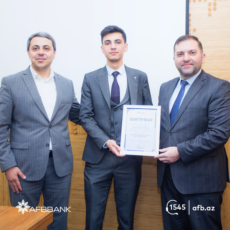 Qeyd edək ki, AFB Bank tərəfindən təşkil edilən təcrübə proqramlarının köməyi ilə gənclər işləyərək öyrənmək, real iş mühiti ilə tanışlıq, güclü komandada işləmək imkanları qazanırlar. Təcrübə proqramını uğurla başa vuran şəxslər Bank tərəfindən sertifikatla təltif edilərək, Bankın işçi ehtiyacı çərçivəsində işlə təmin olunur və ya ehtiyat kadr bazasına daxil edilirlər.