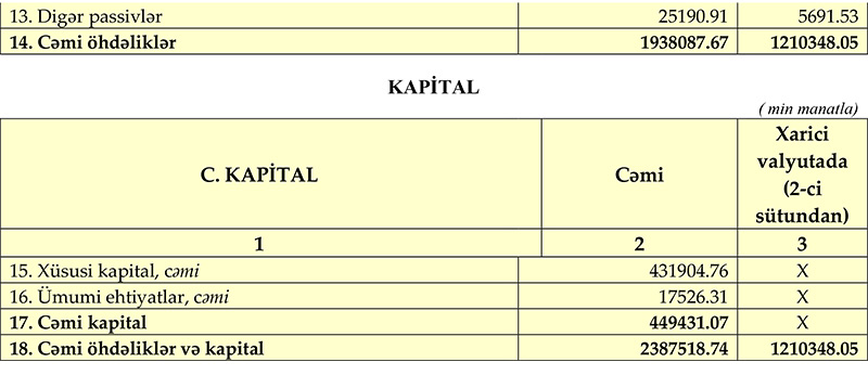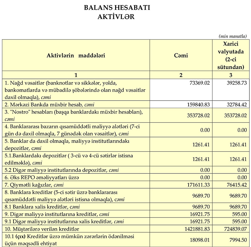 Xatırladaq ki, 2021-ci ilin ilk rübündə Xalq Bankın cəmi əməliyyat gəlirlər 25 milyon 589 min manat, cəmi əməliyyat xərcləri 17 milyon 418 min manat, əməliyyat mənfəəti 8 milyon 171 min manat, aktivlər üzrə mümkün zərərlərin ödənilməsi üçün xüsusi ehtiyatın yaradılmasına ayrılan vəsait 2 milyon 1 min manat, mənfəət vergisi 1 milyon 471 min manat təşkil etmişdi.