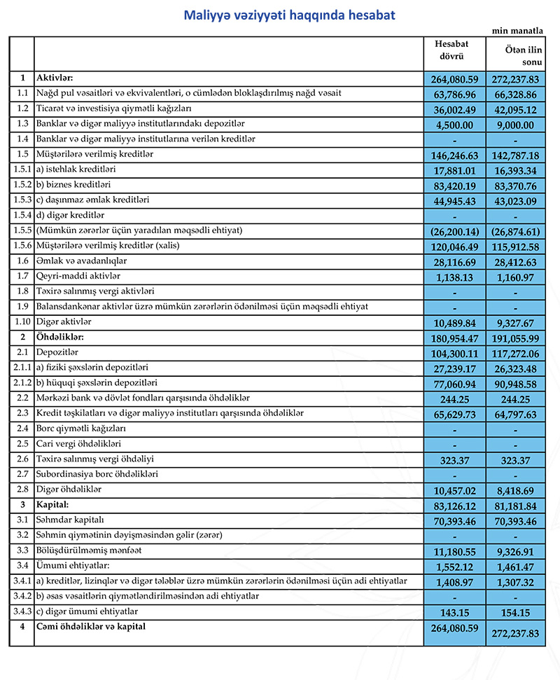 “AFB Bank” maliyyə vəziyyətini açıqlayıb