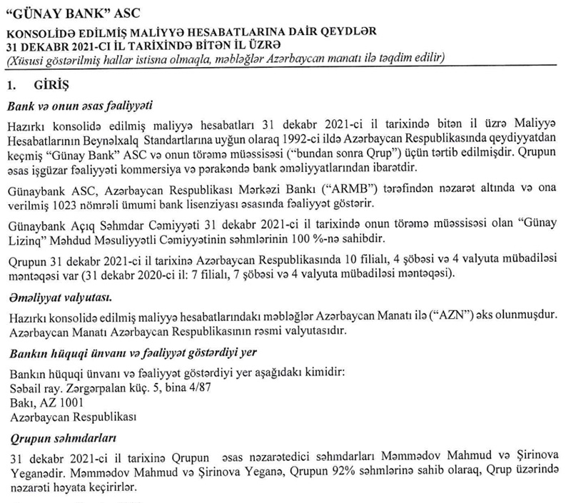 Xatırladaq ki, "Günay Bank" 1992-ci ildə yaradılıb. Onun nizamnamə kapitalı 64,9 milyon manatdır.