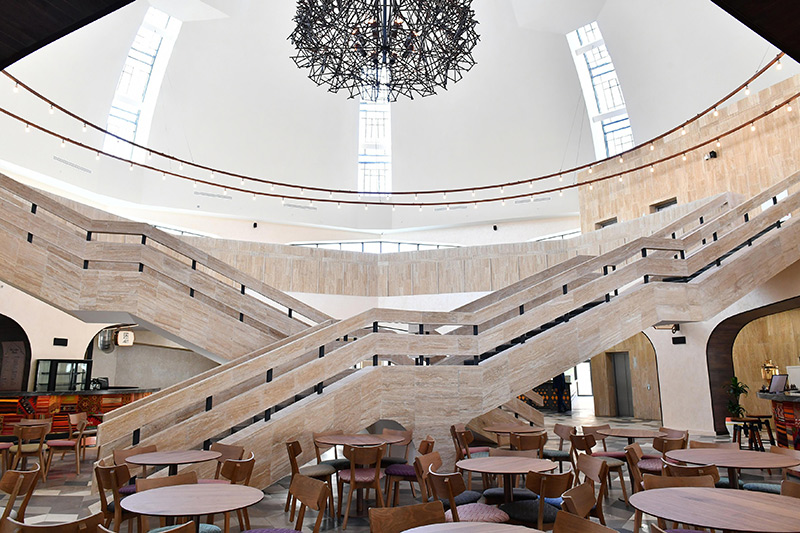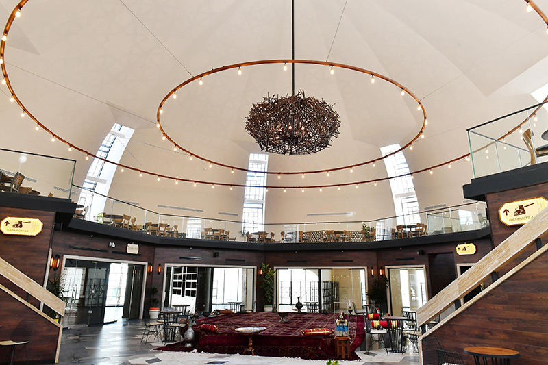 Kompleksin əsas atributu olan gümbəzlər müxtəlif iaşə obyektlərinin təyinatına görə dizayn edilib. Bazara gələcək alıcıların rahatlığını təmin etmək üçün zərgərlik, əl işləri yarmarkaları, “Sandıqca” incəsənət nümunələrinin satışı bölməsi, “Tamaşa”, qəlyanaltılar, kafe və restoranlar, “Sehrli bazar”, emalatxanalar və sair bölmələrin hər biri ayrıca gümbəz və hissələrdə cəmləşdirilib.