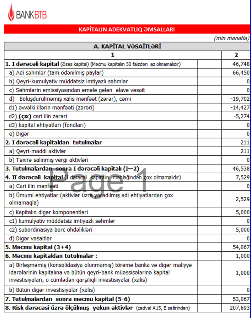 30 İyun 2022-ci il tarixində Bank BTB 53 milyon 67 min manat məcmu kapitala malik olub.