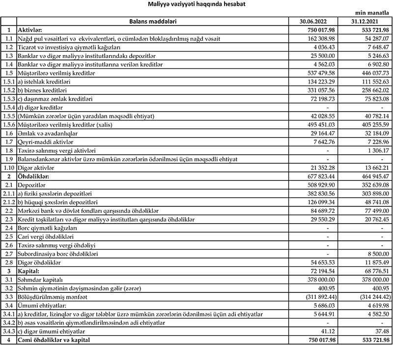 "Yelo Bank" ASC 2022-ci ilin 1-ci yarısını (yanvar-iyun dövrünü) 2 milyon 352 min manat xalis mənfəət ilə başa vurub.