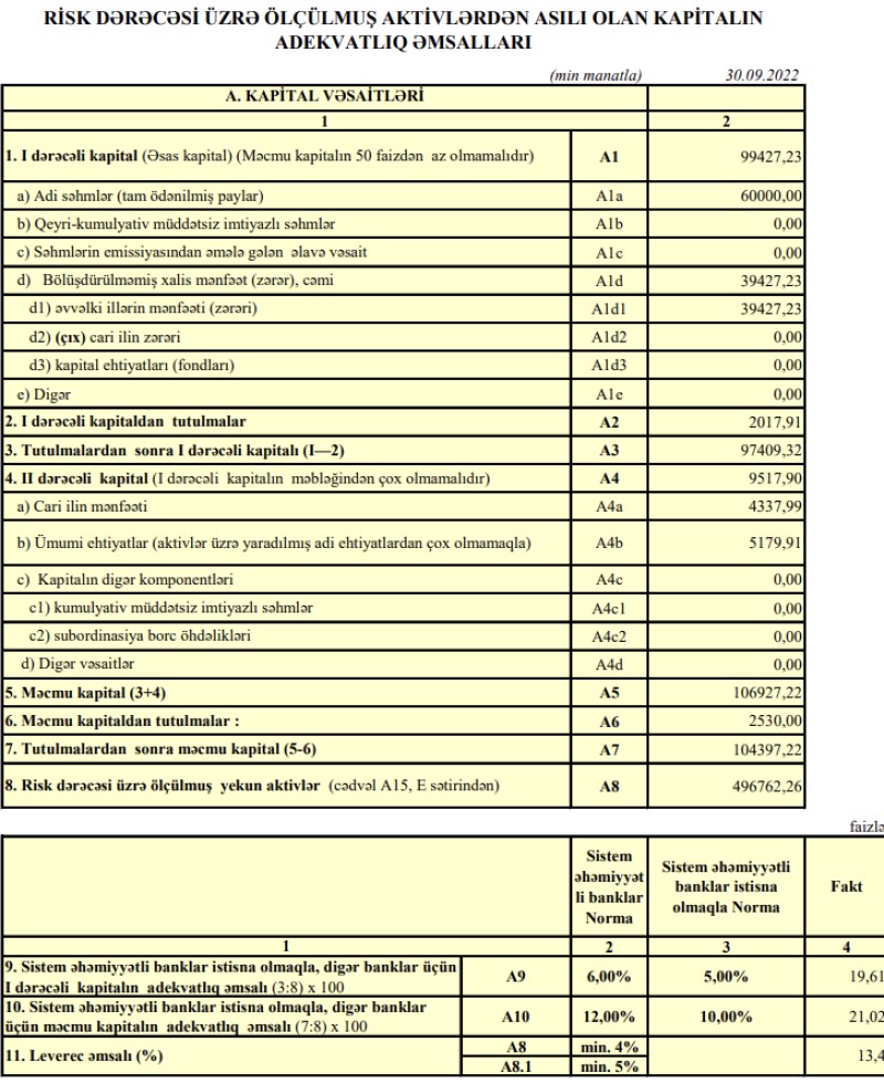 2022-ci ilin 9 ayında ASB-nin cəmi aktivləri 100 milyon manata yaxın azalıb.