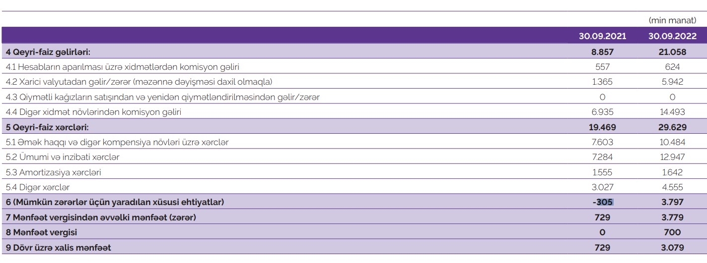 Bank cari ilin doqquz ayını 3 milyon manatdan artıq xalis mənfəətlə başa vurub.