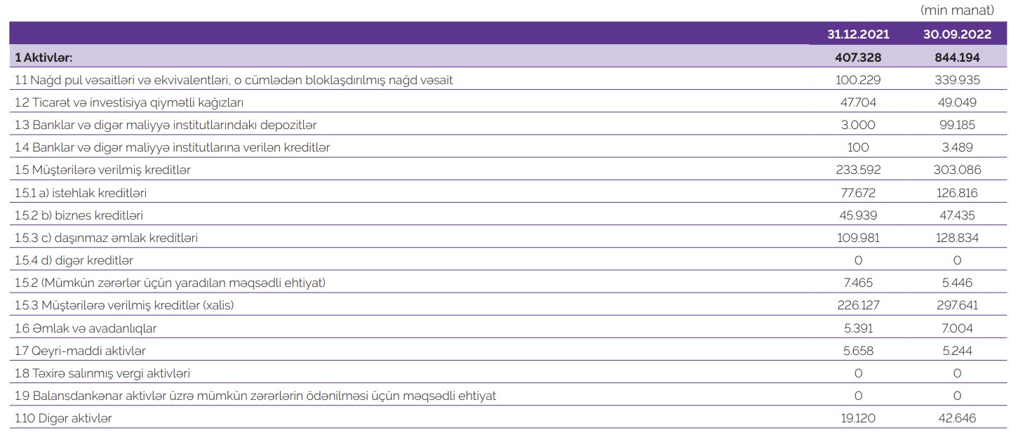 Dövlət bankı Azər Türk Bankın cəmi aktivləri 01 oktyabr 2022-ci il tarixinə 844,2 milyon manat təşkil edib.