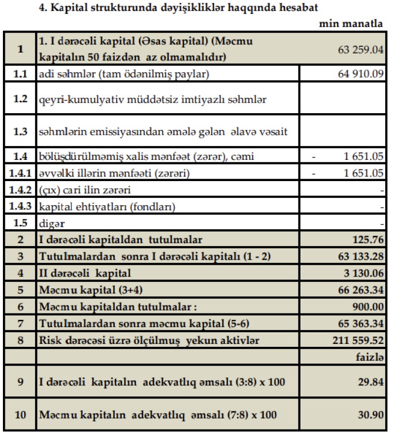 30 Sentyabr 2022-ci il tarixində "GünayBank" 65 milyon 363 min manat məcmu kapitala malik olub (31 Dekabr 2021-ci il tarixində 65 milyon 374 min manat idi).
