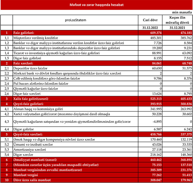 “Kapital Bank” ASC 2022-ci il üzrə maliyyə göstəricilərini açıqlayıb.