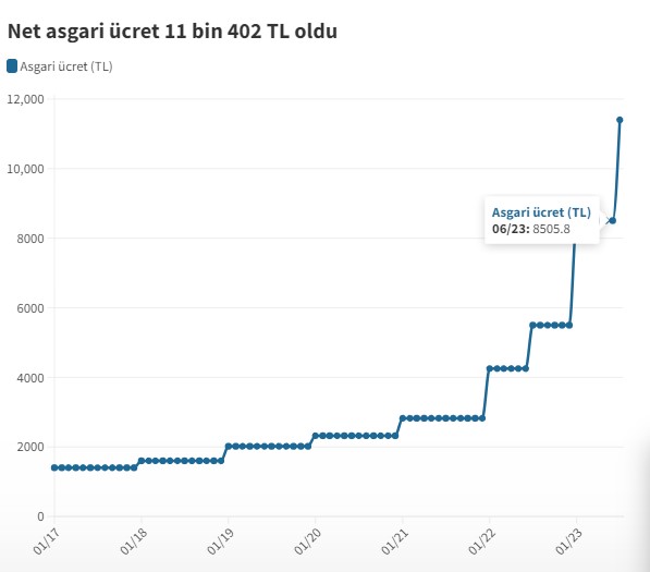 Minimum əməkhaqqı 34% artımla 11 min 402 Türk Lirəsi (cari məzənnə ilə 820 manat) olaraq açıqlanıb.