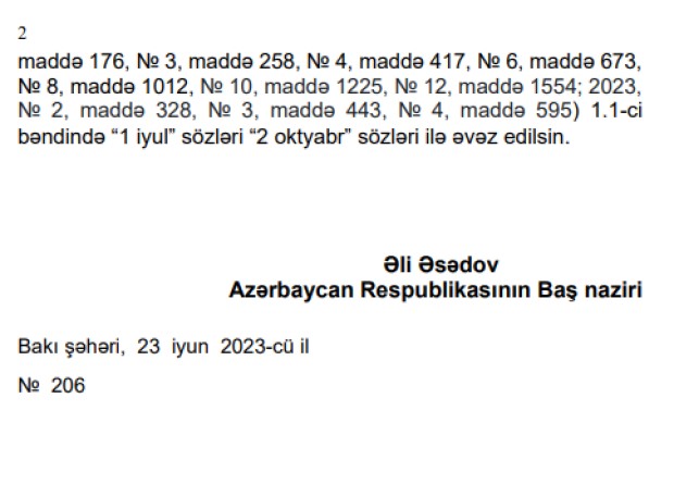 Marja xəbər verir ki, Baş nazir Əli Əsədov bununla bağlı qərar imzalayıb.