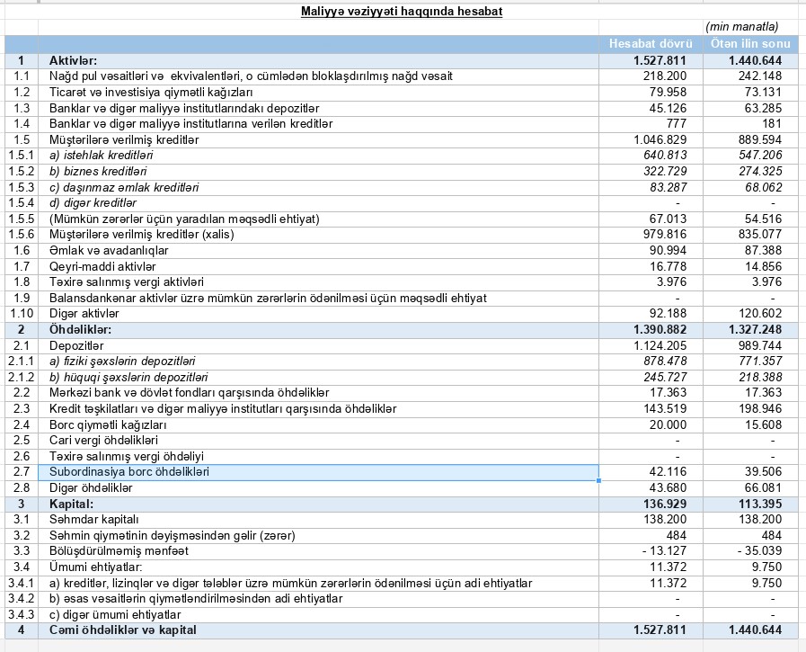 Marja.az-ın məlumatına görə, o cümlədən, Bankın istehlak kreditləri portfeli 93 milyon 607 min manat artaraq 64 milyon 813 min manata, biznes kreditləri portfeli 48 milyon 403 min manat artaraq 322 milyon 728 min manata, ipoteka kreditləri portfeli isə 15 milyon 225 min manat və ya 22,4% artaraq 83 milyon 287 min manata yüksəlib.