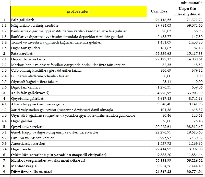 2023-cü ilin 9 ayında ötən ilin eyni dövrü ilə müqayisədə "Bank of Baku"nun qeyri-faiz gəlirləri 875 min manat və ya 10% artaraq 9 milyon 617 min manata olub.