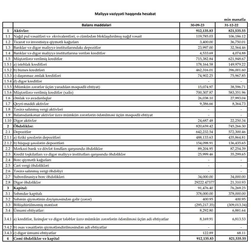 2023-cü ilin 1-ci rübündə 702 min manat, 2-ci rübündə 1 milyon 522 min manat əməliyyat mənfəəti əldə etmiş "Yelo Bank" ASC, 3-cü rübündə 1 milyon 82 min manat əməliyyat mənfəəti təmin etməyə nail olub.