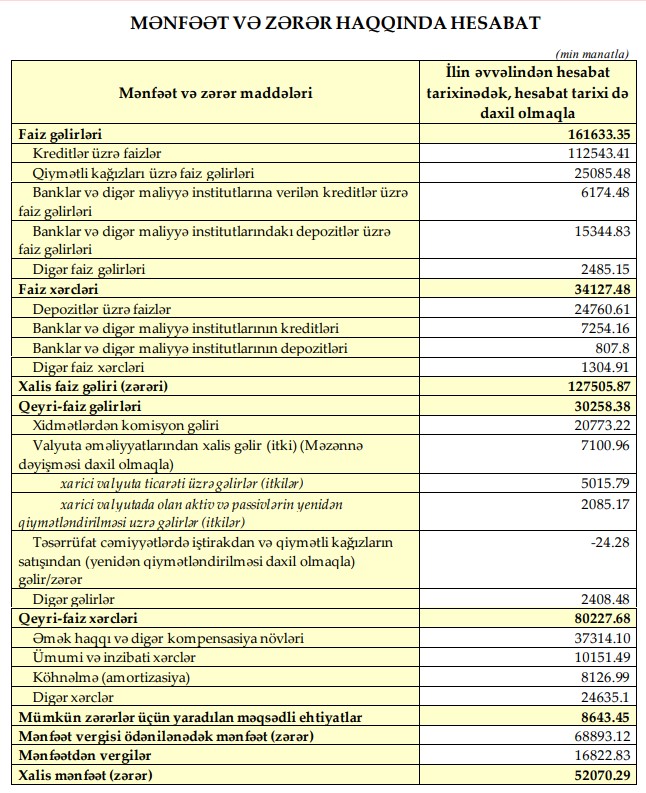 "Xalq Bank"ın maliyyə vəziyyəti açıqlanıb