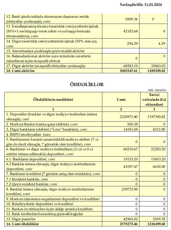 BANK BÖYÜYÜB, AKTİVLƏRİ 3 MİLYARD MANAT SƏVİYYƏSİNİ KEÇİB
