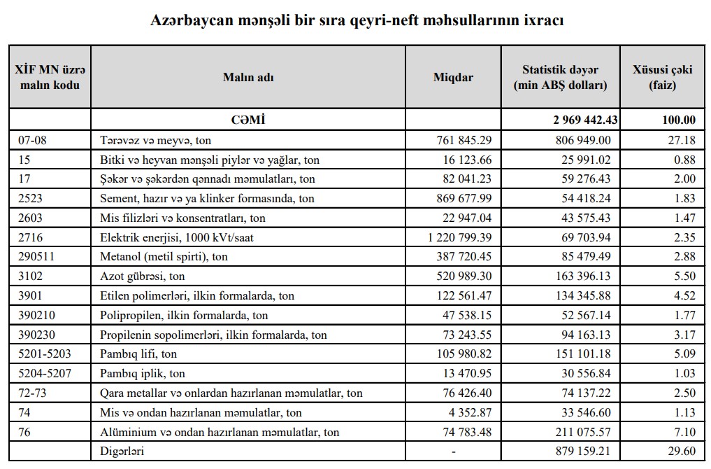 2025-cü ilin yanvar-noyabr aylarında (11 ayda) Azərbaycanın ən çox ixrac və idxal etdiyi mallar.