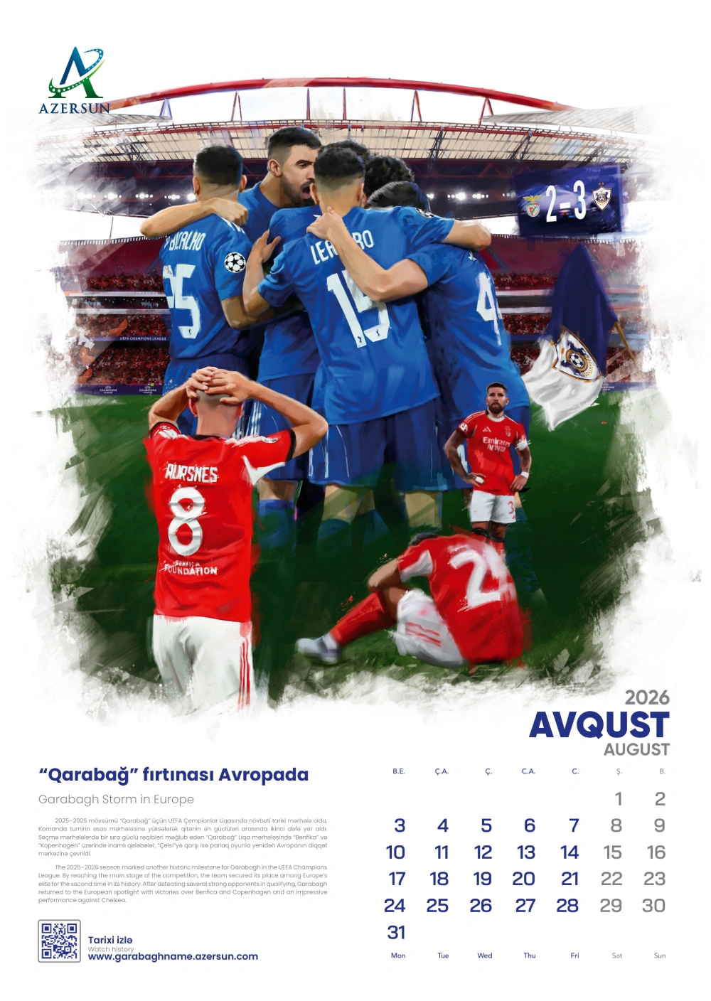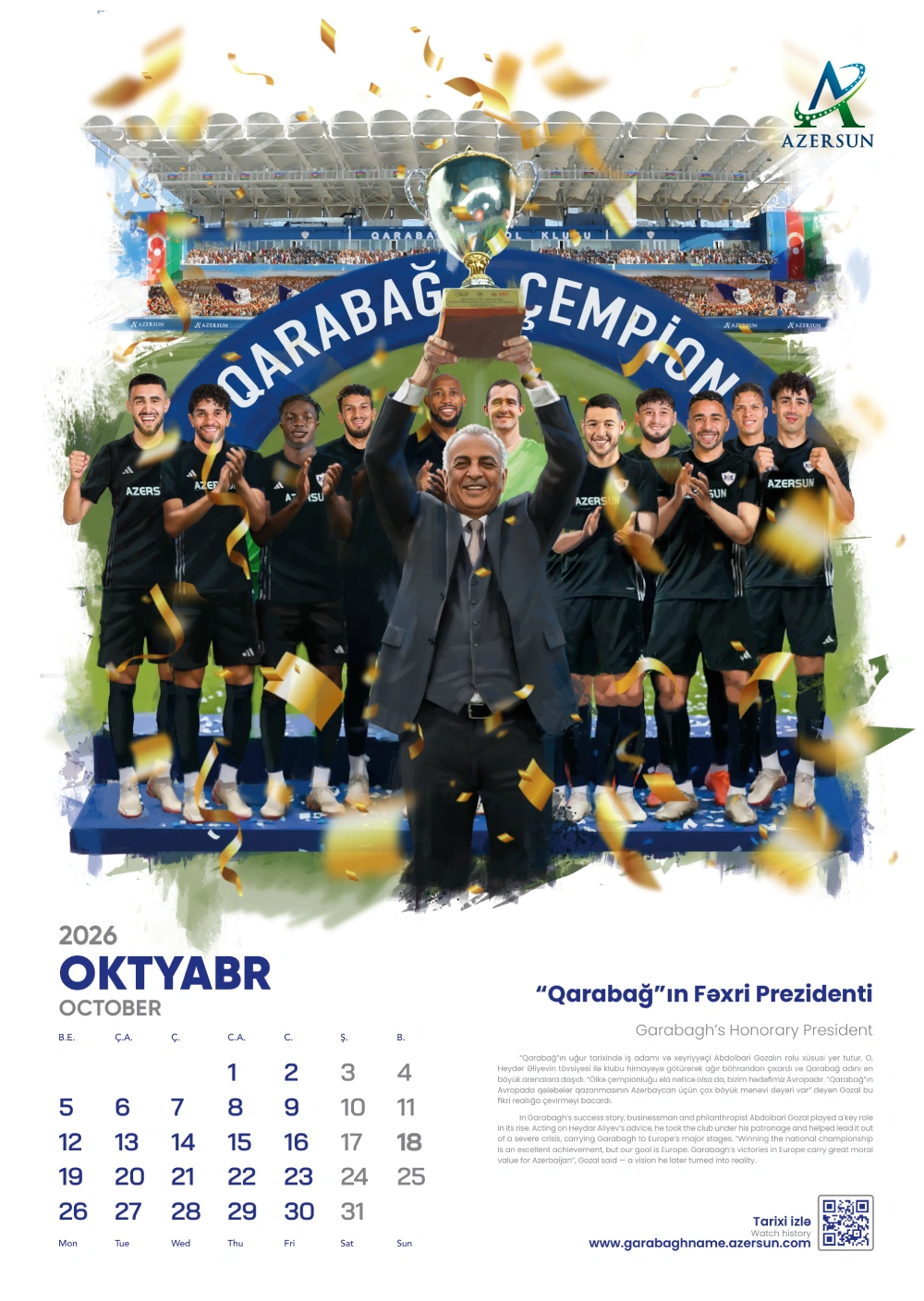 Azərsun Holdinq Qarabağnamə 2026 təqvim dəsti Azərsun Holdinq təqvimi Qarabağ futbol klubu Qarabağ FK xüsusi təqvim nəşri futbol mövzulu təqvim Qarabağın İmarəti Allahverdi Bağırov Azərsun Holdinq himayəsi Abdolbari Gozal Qarabağ klubunun tarixi Qarabağ əfsanəvi futbolçuları Qarabağın uğurları Qarabağ beynəlxalq qələbələr Qarabağın ustadı Qurban Qurbanov Qarabağda dönüş nöqtəsi Qarabağın Fatehi İlham Əliyev Qarabağ FK Qarabağ həqiqətlərinin təbliği Qarabağ brendi idman və korporativ dəstək futbol irsi 25 illik himayə Azərsun Holdinq və Qarabağ Azərbaycan futbolu idman mədəniyyəti Qarabağ klubunun yubileyi korporativ sosial məsuliyyət idmana dəstək Azərbaycan futbol tarixi.