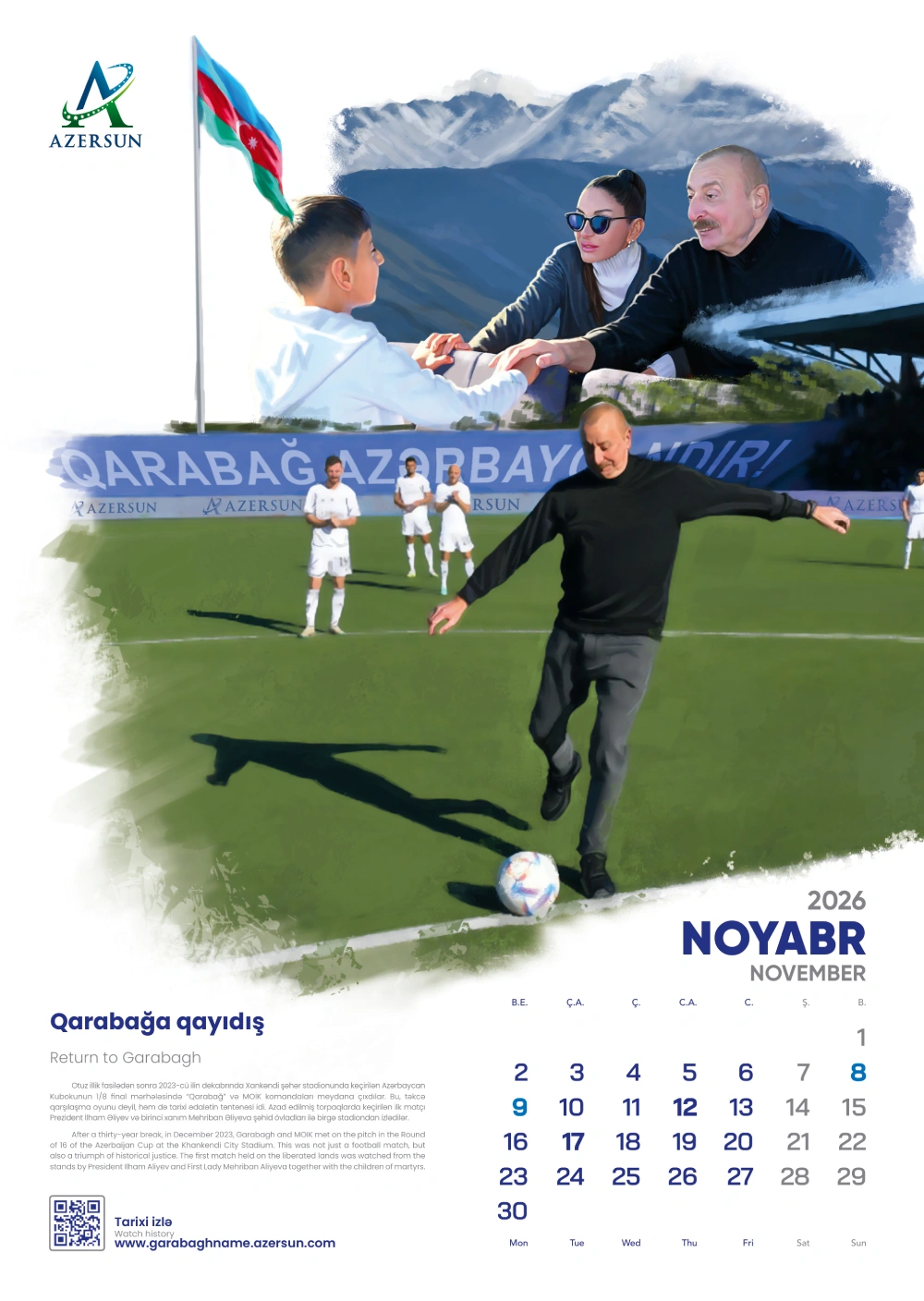 (®) “Azərsun Holdinq” ənənəsinə sadiq qalaraq növbəti illik təqvimini çap etdirib. 2026-cı il üçün hazırlanan bu təqvim son illərdə futbol sahəsində qızıl dövrünü yaşayan “Qarabağ” futbol klubuna həsr olunub.
