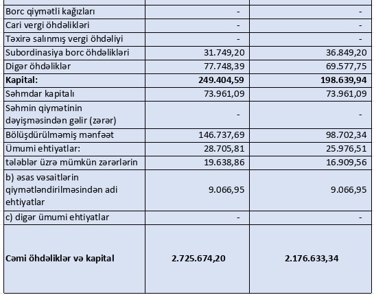 Kredit təşkilatları və digər maliyyə institutları qarşısında öhdəliklərin 92,9% artması bankın xarici və ya digər maliyyə mənbələrindən daha aktiv şəkildə istifadə etdiyini və əlavə maliyyə resurslarına daha çox güvəndiyini göstərir. Bu, kredit portfeli və aktiv artımını sürətləndirməyə imkan verən əsas amillərdən biri kimi qiymətləndirilir. Bankın kapitalının 20% artması maliyyə dayanıqlığını gücləndirən əsas göstəricidir. Bu artım bankın risklərə qarşı müqavimətini və gələcək genişlənmə imkanlarını möhkəmləndirir.