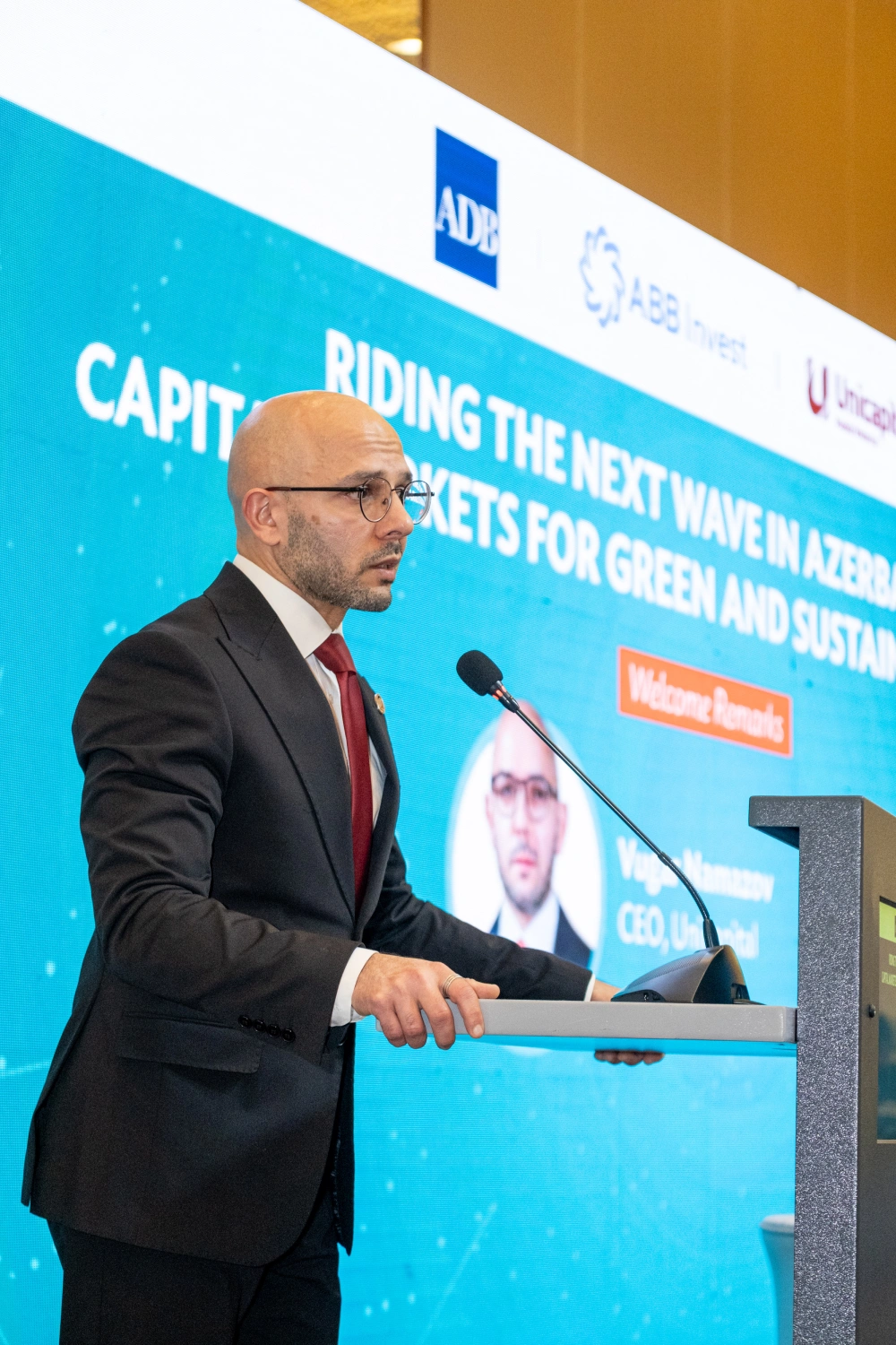 Qeyd edilib ki, AİB-in ölkə üzrə direktoru Sünniyə Durrani-Camal, Unicapital-ın baş direktoru Vüqar Namazov və ABB Invest-in baş direktoru Nadir Babazadə “Azərbaycan üçün İnkişafın Növbəti Mərhələsi: Yaşıl və Davamlı Artım Üçün Kapital Bazarları” forumunda açılış nitqi ilə çıxış edib.