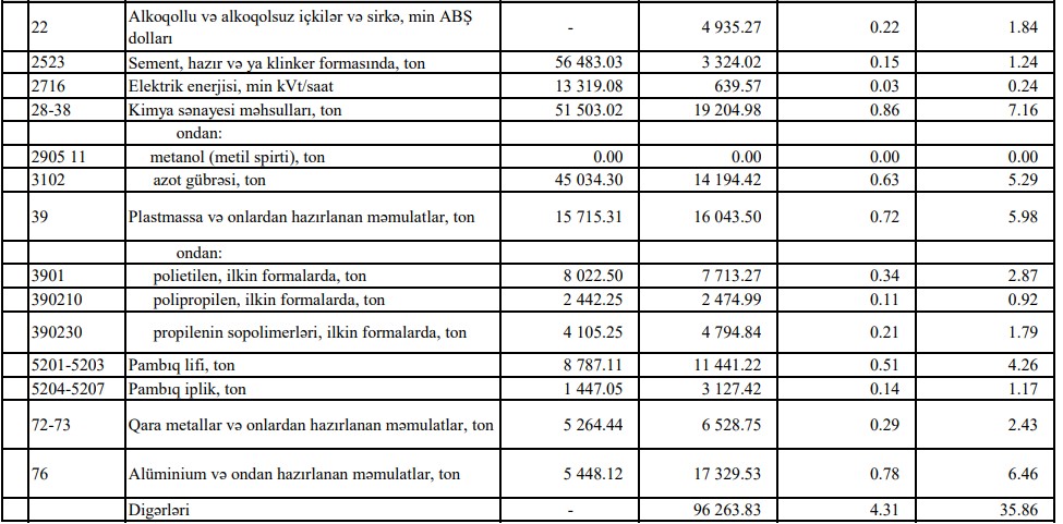 Azərbaycanın ən çox ixrac və idxal etdiyi mallar - YENİ SİYAHI