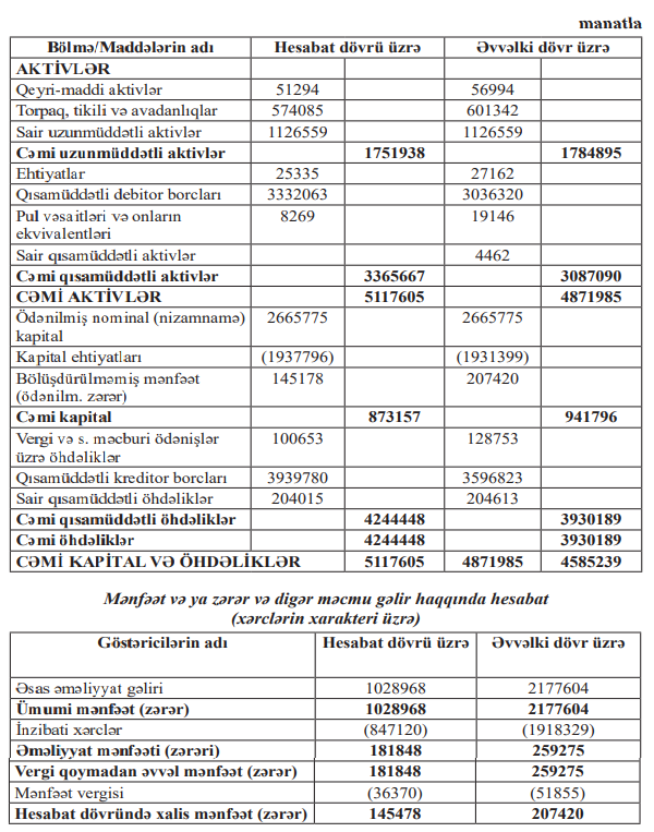 “Məişət Malları” ASC-nin 31 dekabr 2025-ci il tarixinə maliyyə vəziyyəti haqqında hesabatı