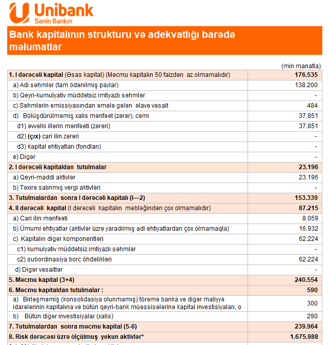 Depozit portfelinin sabit qalması bankın resurs bazasının stabil olduğunu göstərir. Fiziki şəxslərin depozitlərində artım Unibanka müştəri etimadının güclü olduğunu göstərir.