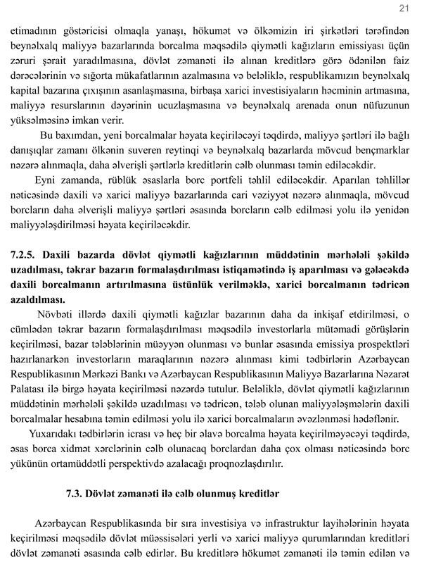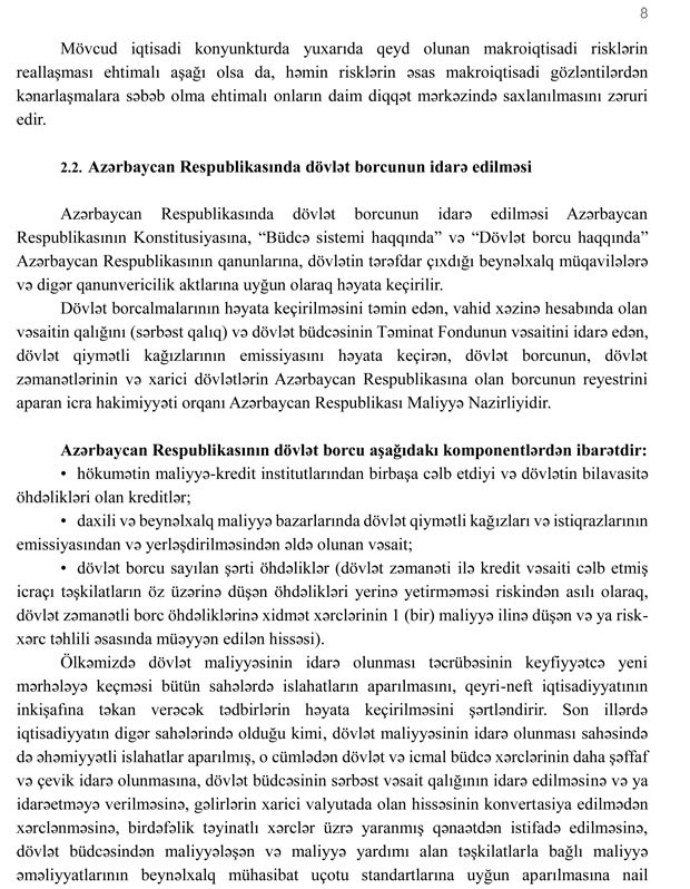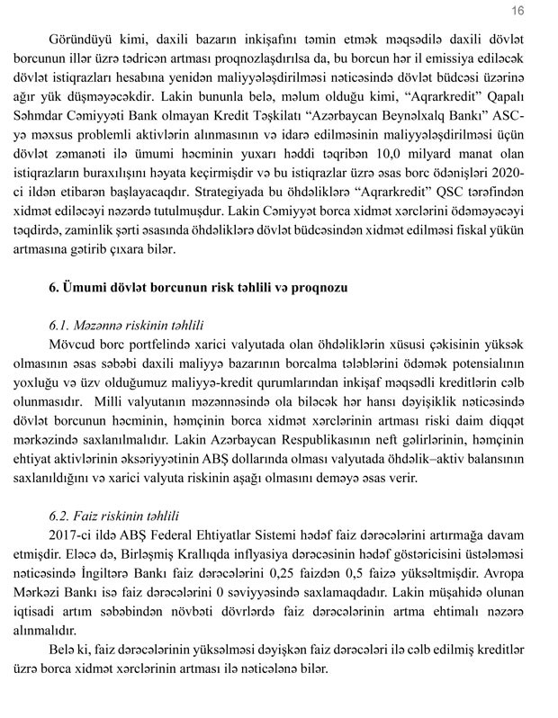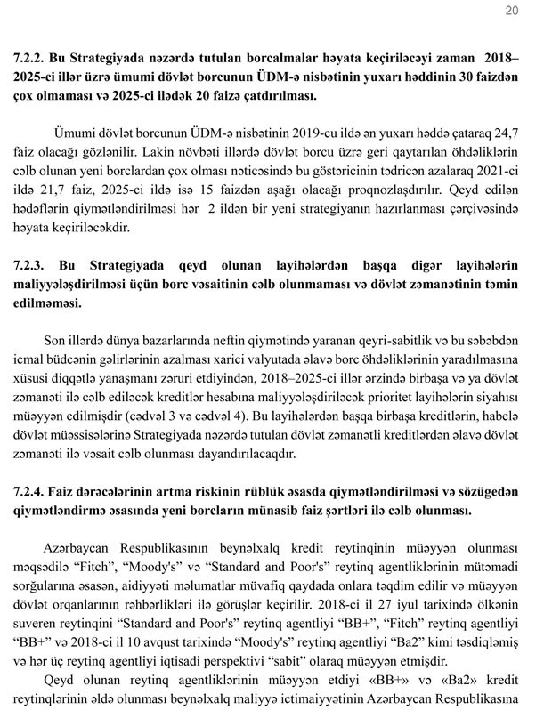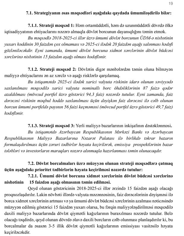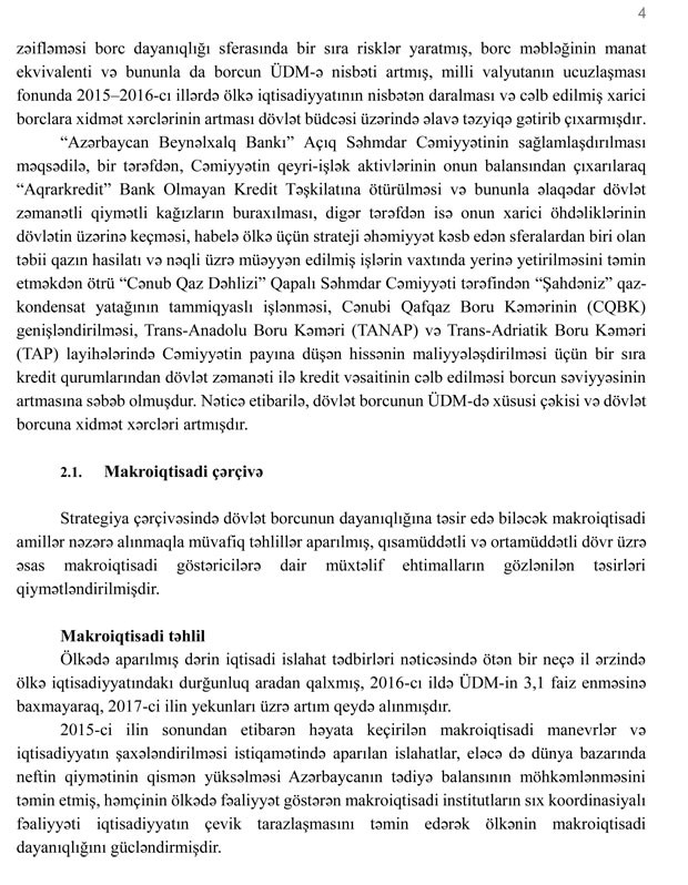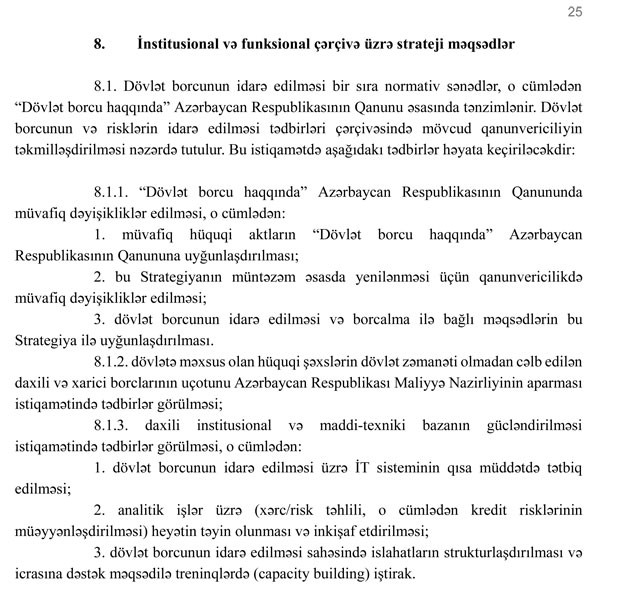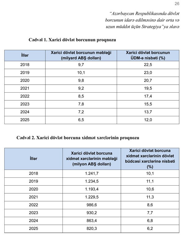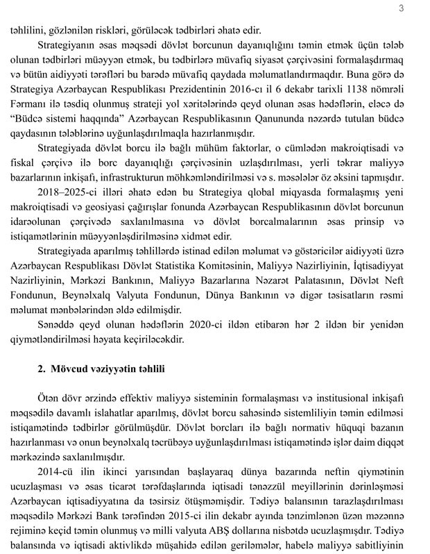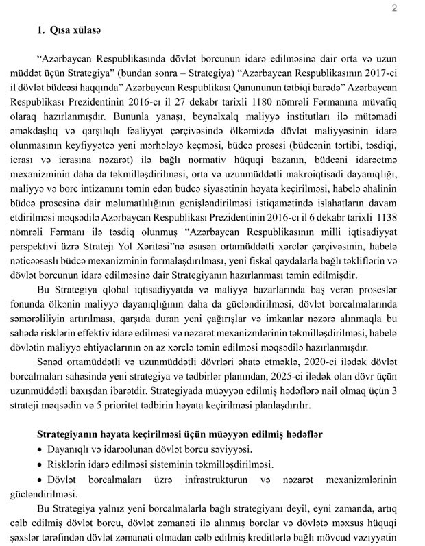 Azərbaycan Respublikasında dövlət borcunun idarə edilməsinə dair orta və uzun müddət üçün Strategiya