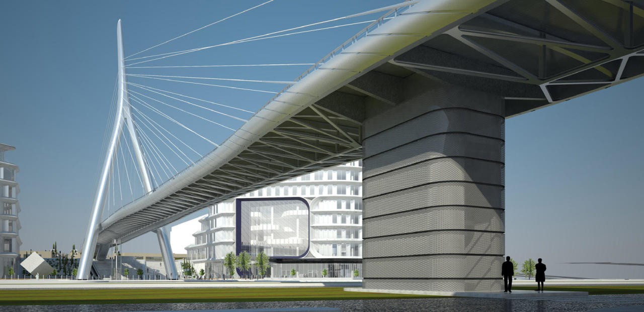 Ağ Şəhərdə salınacaq yüksək səviyyəli körpü layihənin şimal və cənubunu Nobel prospekti üzərindən birləşdirəcək və Bakının yeni rəmzlərindən birinə çevrilməsini vəd edir.
