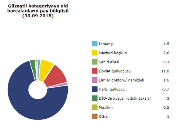 Dövlət büdcəsindən yalnız sosial ipoteka maliyyələşdirilir. Onun maksimal məbləği 100 min manat təşkil edir, illik faiz dərəcəsi 4%-dən çox deyil. Müddəti 30 ilə qədərdir. İlkin ödəniş 10% təşkil edir.