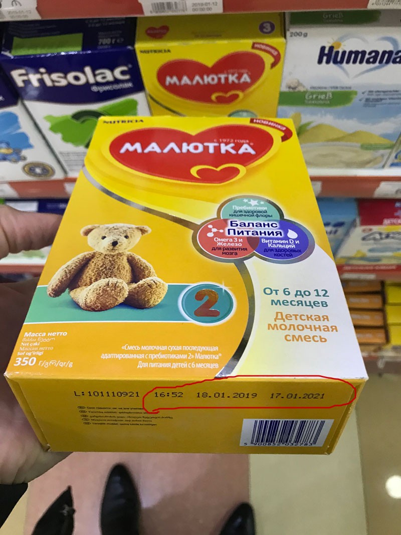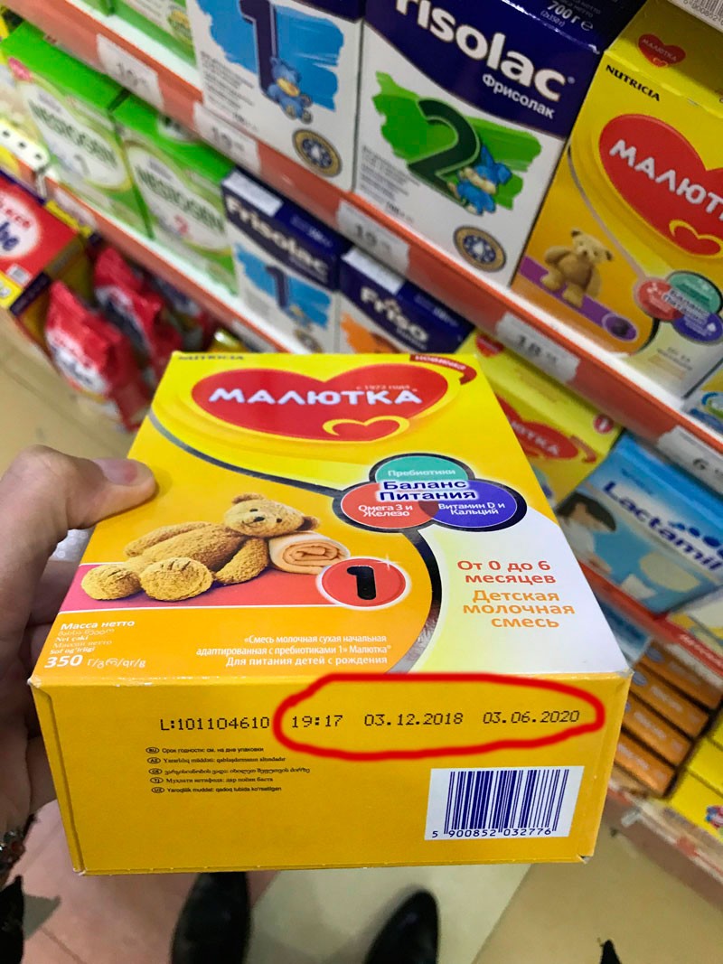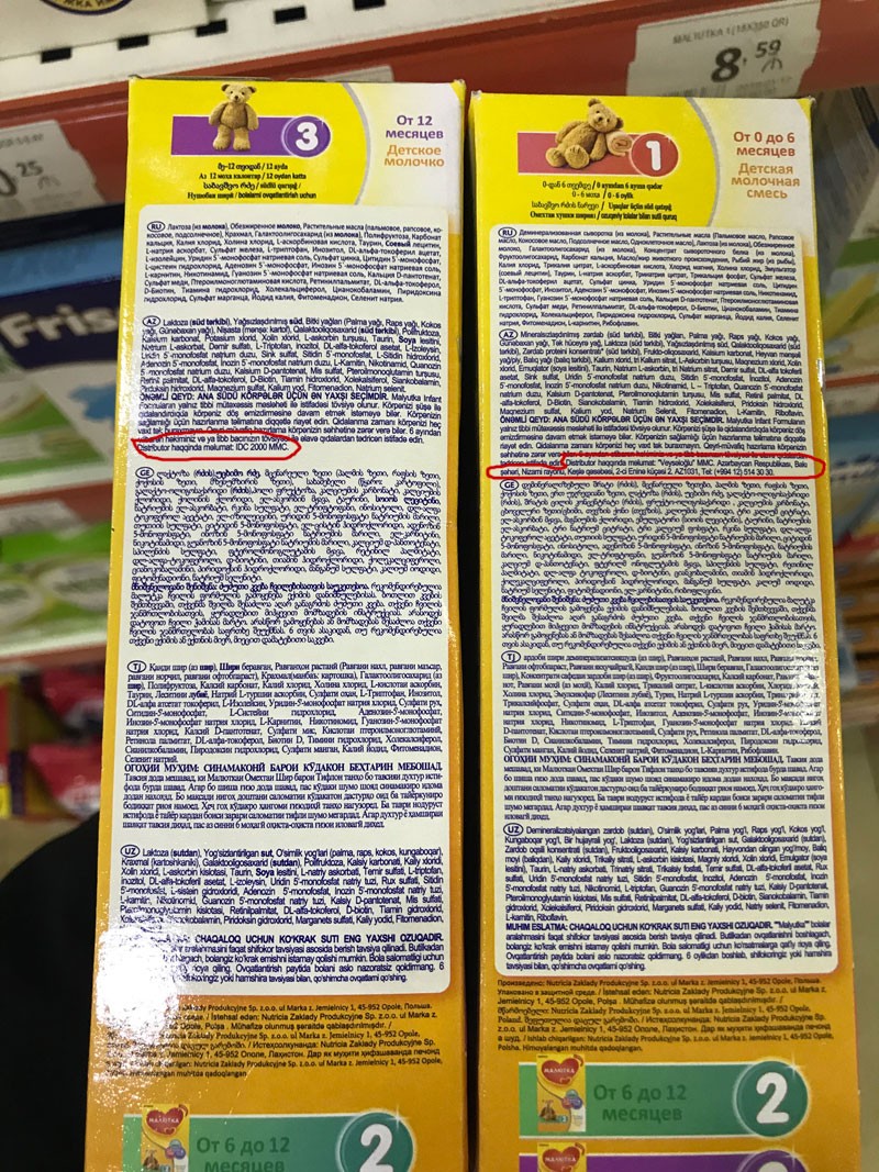 Diqqəti cəlb edən, üzərində distribüterin (idxalçının) “Veysəloğlu” MMC olduğu göstərilən “Malyutka” uşaq qidalarının istehsal tarixinin 2018-ci ilin sonunadək olmasıdır. İstehsal tarixi 2019-cu ildə olduğu göstərilən “Malyutka” uşaq qidalarının üzərində isə idxalçının “İDC-2000” MMC olduğu yazılıb.