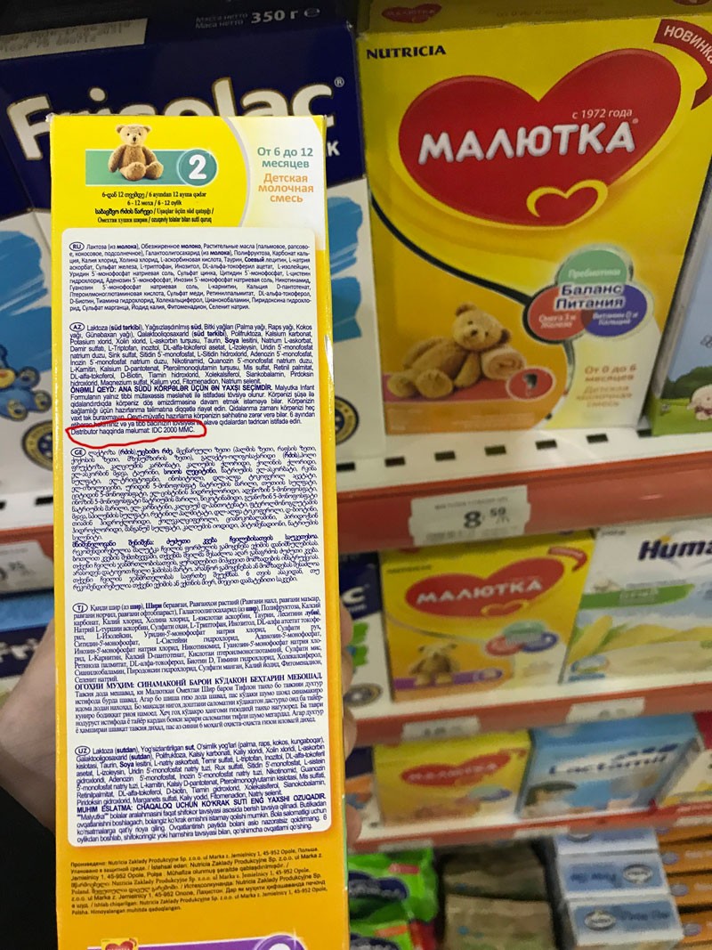 Araşdırma zamanı, satışda istehsalı 2018-ci il ərzində olmuş və üzərində distribütorun “İDC-2000” MMC olduğu barədə məlumatın verildiyi “Malyutka” uşaq qidalarını görmədik. Üzərində, distribütorun “İDC-2000” MMC olduğu yazılmış qidalar 2019-cu ildə istehsal edilib.