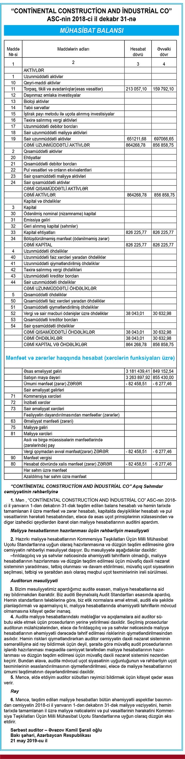 Təmir və tikinti xidmətləri göstərən “Continental Construction and İndustrial CO” ASC 2018-ci ili 82 min 458 manat zərər ilə başa vurub. 2017-ci illə müqayisədə şirkətin zərəri 13 dəfə artıb. “Continental Construction and İndustrial CO” 2017-ci ili 6 min 277 manat zərər ilə bağlamışdı.