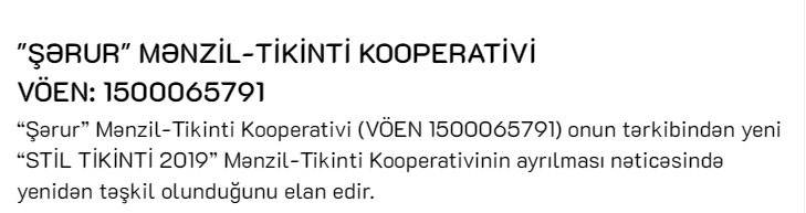 2018-ci ilin Dekabr ayında “Stil Tikinti” Mənzil-Tikinti Kooperativi “Şərur” Mənzil-Tikinti Kooperativinə qoşulmuşdu. “Stil Tikinti” MTK isə ləğv olunduğunu elan etmişdi.