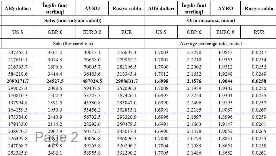 Azərbaycan Mərkəzi Bankı nağd xarici valyuta ilə mübadilə əməliyyatlarına dair statistik göstəriciləri açıqlayıb.