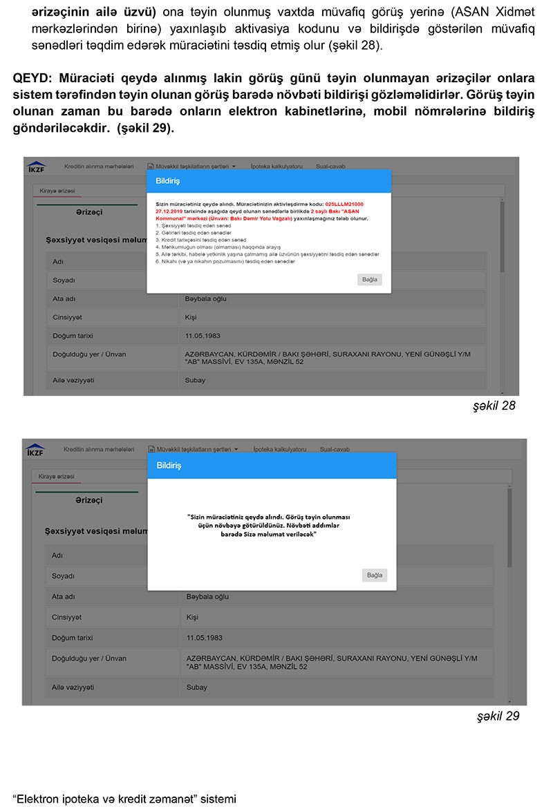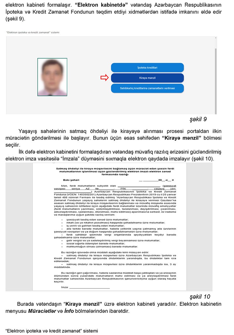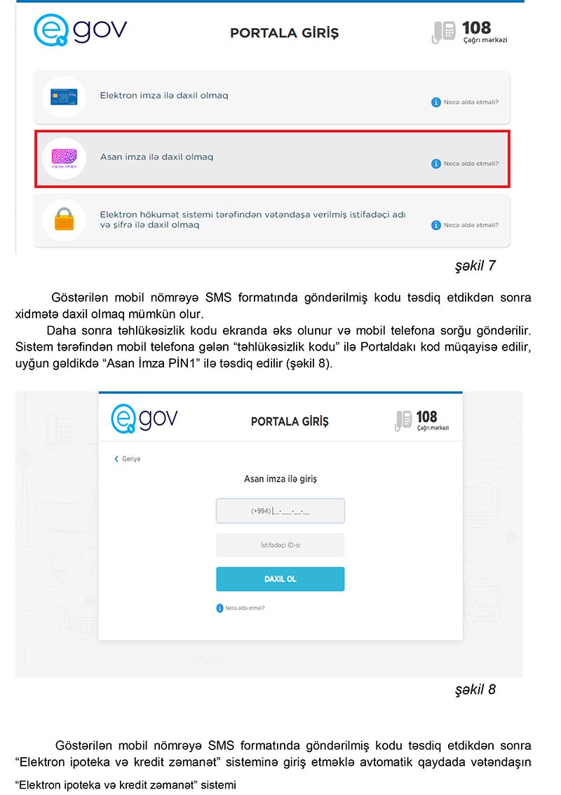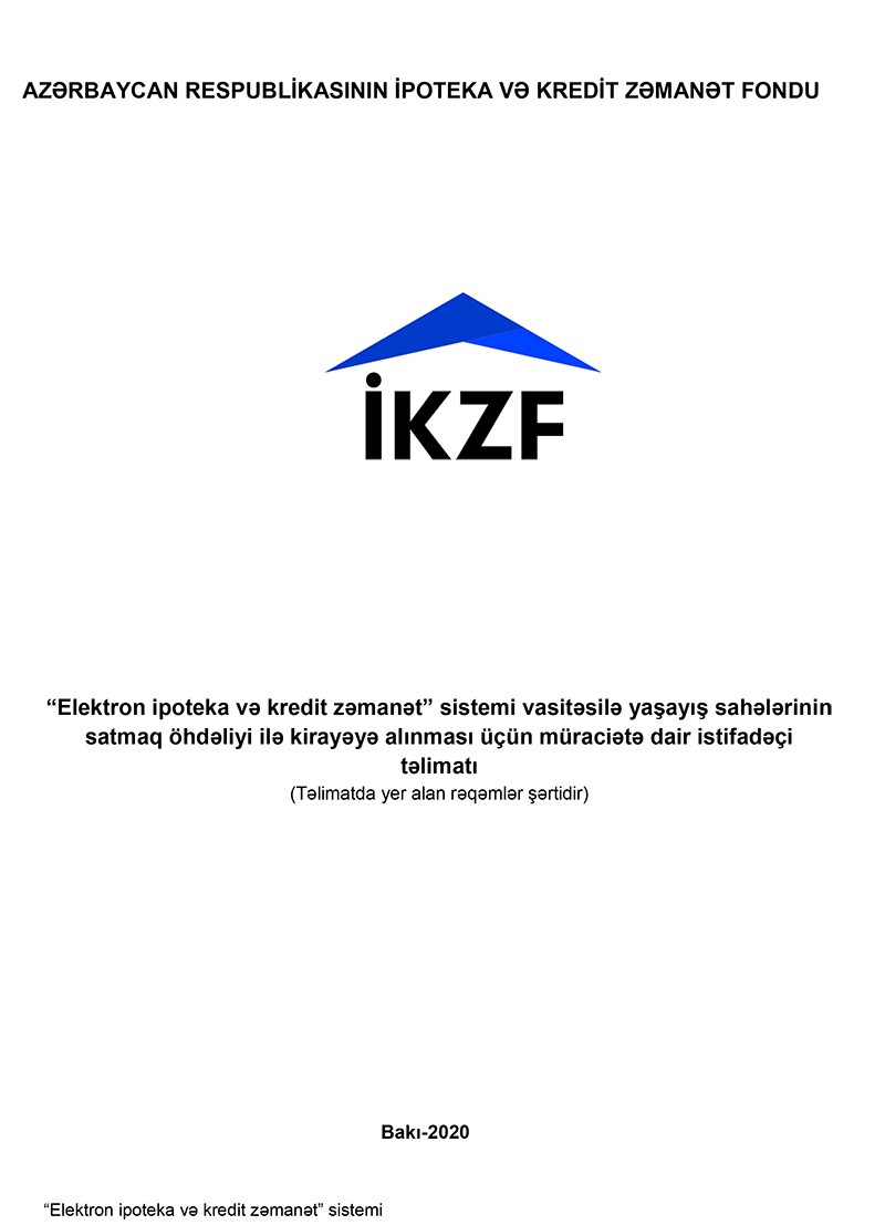 Müraciətlər “Elektron Hökumət Portalı” (www.e-gov.az) üzərindən Fondun “Elektron ipoteka və kredit zəmanət sistemi” (EİKZS) vasitəsi ilə gücləndirilmiş elektron imzadan (Elektron imza və ya ASAN imza) istifadə etməklə həyata keçiriləcək.