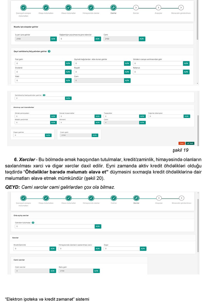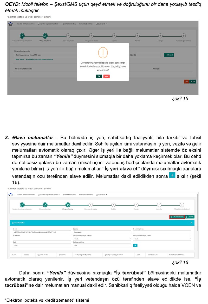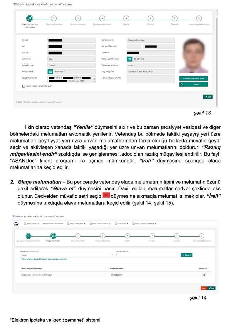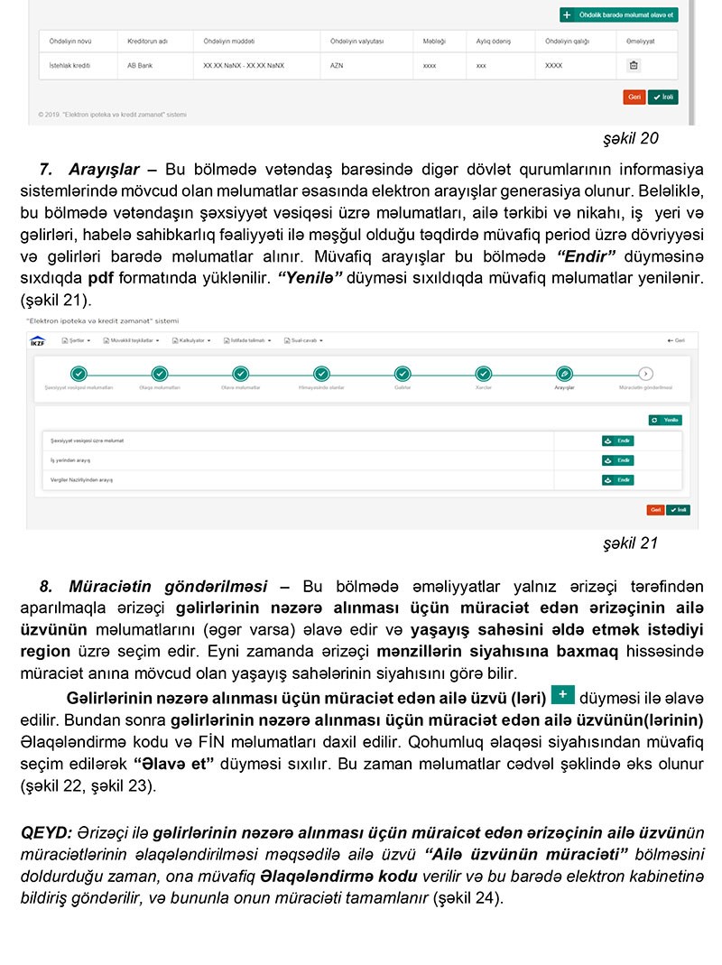Müraciətlər “Elektron Hökumət Portalı” (www.e-gov.az) üzərindən Fondun “Elektron ipoteka və kredit zəmanət sistemi” (EİKZS) vasitəsi ilə gücləndirilmiş elektron imzadan (Elektron imza və ya ASAN imza) istifadə etməklə həyata keçiriləcək.