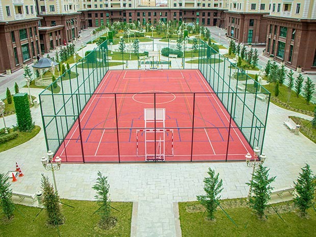 Kompleksin ağaclar, gül kolları, çiçəkli çəmənlərlə zəngin olan xüsusi landşaft dizayna malik 1,5 hektarlıq həyəti sakinlərinin rahat istirahəti üçün nəzərdə tutulub. Burada qaçış və velosiped zolağı, idman meydançaları, uşaq əyləncə zonası olan əsl qapalı park salınıb. “Renessans Palace”ın sakinləri kompleksdən kənara çıxmadan da onlar üçün yaradılan geniş həyətyani sahədə - parkda həm özlərinin, həm də uşaqlarının asudə vaxtlarını səmərəli keçirə bilirlər.