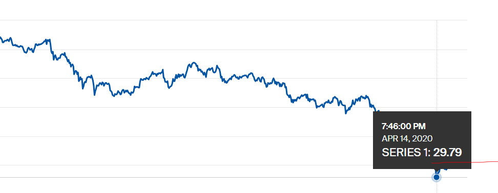 Marja xəbər verir ki, Bakı vaxtı ilə saat 20:25-də Brent nefti 6% ucuzlaşma ilə 29,79 dolları görüb.