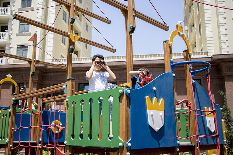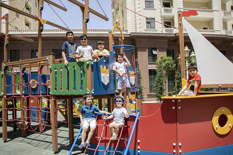 Renessans Palace özünün balaca sakinləri üçün də xüsusi əyləncə zonası yaradıb. Burada quraşdırılan yelləncəklər və oyun meydançaları təhlükəsizlik üçün hər ay xüsusi diaqnostikadan keçirilir.