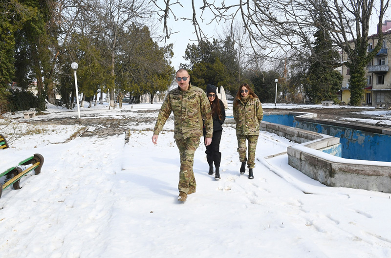 Prezident İlham Əliyev, birinci xanım Mehriban Əliyeva və qızları Leyla Əliyeva Şuşa rayonunun Daşaltı kəndinə gəliblər.