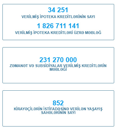 Bu günə qədər İpoteka və Kredit Zəmanət Fondu 34 min 251 borcalana 1 milyard 826 milyon 711 min manat məbləğində ipoteka krediti verib.
