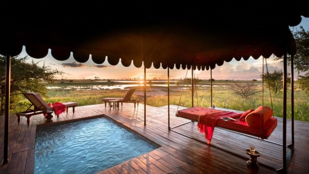 Kalaxari səhrasında lüks düşərgə, 10 iri çadır, hər birində hovuz, qədim safari dizaynında yataq və İran xalçaları ilə bəzədilmiş çay içmə guşəsi var. Düşərgədə həm də kitabxana, bilyard otağı və bar mövcuddur.