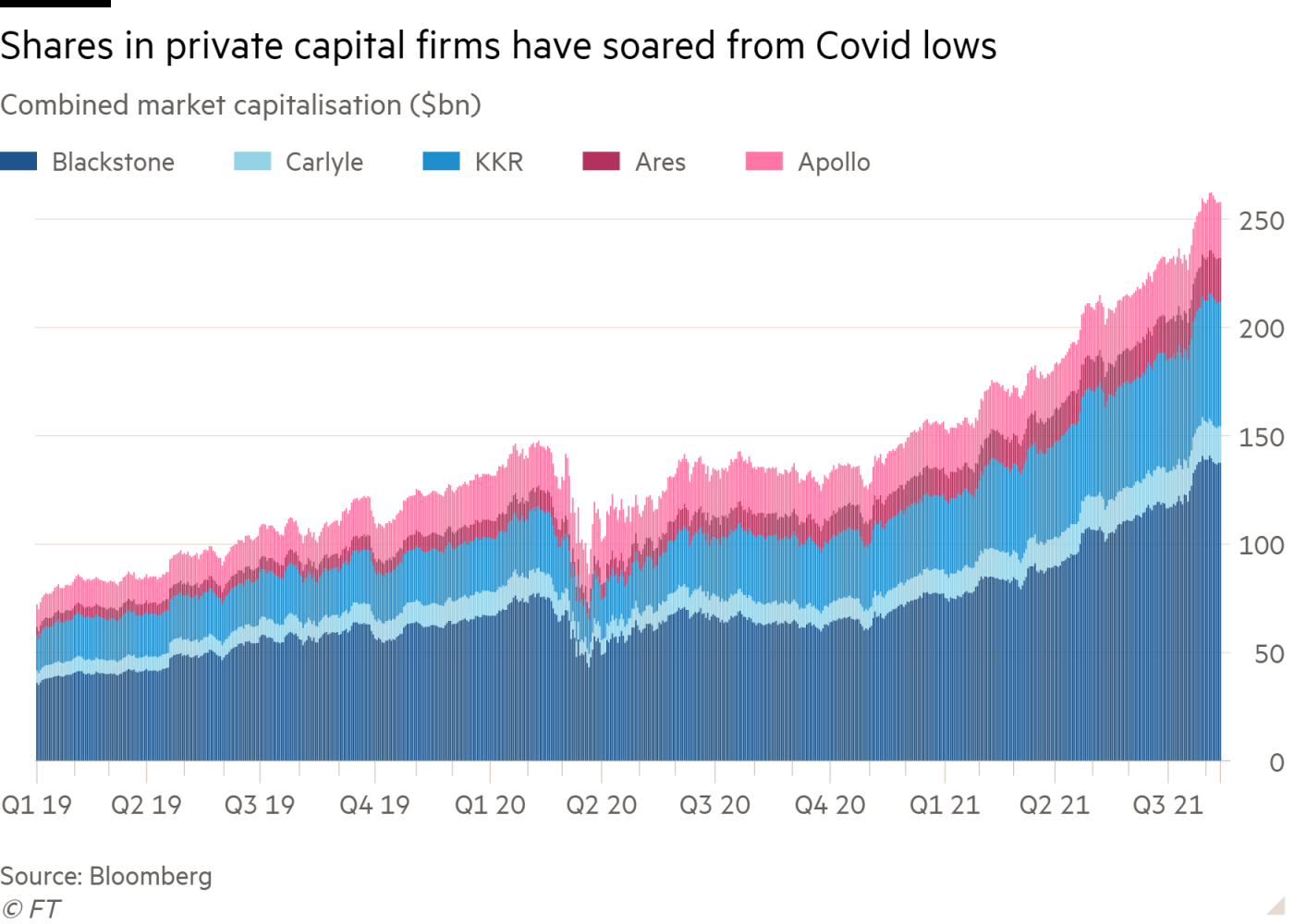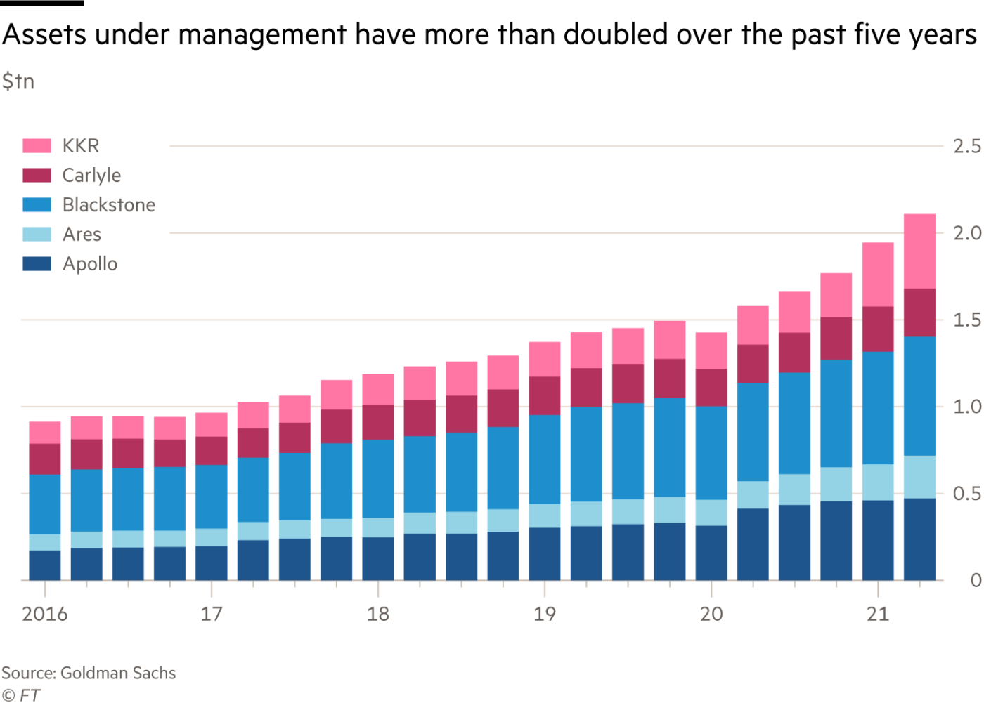 Marja Financial Times-a istinadla xəbər verir ki, təkcə 5 Amerikan şirkətinin (Blackstone, KKR, Carlyle, Apollo və Ares) bazar dəyəri ötən ilin martından bəri üçqat artaraq, 252 milyard dollara çatıb. 2020-ci ilin martında bu rəqəm cəmi 80 milyard dollar idi.