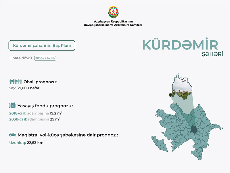 Dövlət Şəhərsalma və Arxitektura Komitəsinin sifarişi ilə hazırlanmış Kürdəmir şəhərinin Baş planı Azərbaycan Respublikasının Nazirlər Kabinetinin 29 mart 2022-ci il tarixli müvafiq qərarı ilə təsdiq edilib. Kürdəmir şəhərinin sayca üçüncü Baş planı “Azərdövlətlayihə” Dövlət Baş Layihə İnstitutu tərəfindən hazırlanıb. 2038-ci ilə qədərki dövr üçün nəzərdə tutulan yeni sənəddə müasir planlaşdırma tələbləri əsas götürülərək şəhərin gələcək inkişaf istiqamətləri müəyyən edilib.