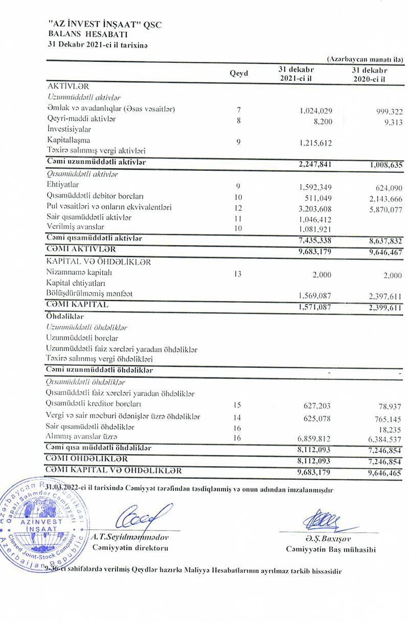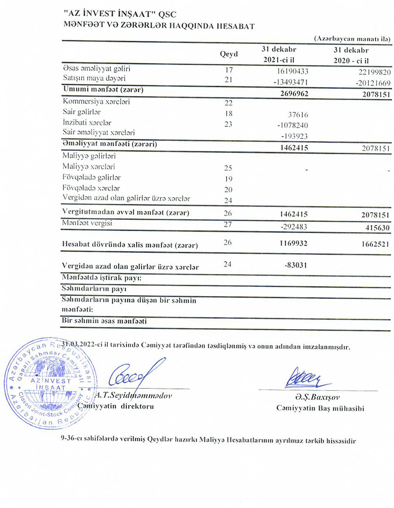 “Az İnvest İnşaat” QSC 2021-ci ili 1 milyon 170 min manat xalis mənfəət ilə başa vurub. 2020-ci illə müqayisədə 2021-ci ildə Şirkətin xalis mənfəəti 29,6% və ya 493 min manat azalıb. Belə ki, “Az İnvest İnşaat” 2020-ci ili 1 milyon 663 min manat xalis mənfəət ilə bağlamışdı.