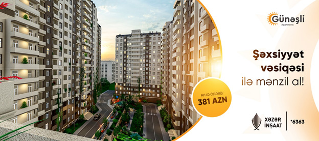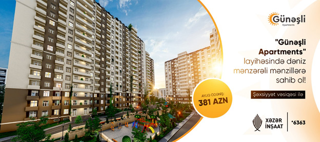 (®) Xəzər İnşaat “Günəşli Apartments” layihəsində arayışsız və zaminsiz ŞƏXSİYYƏT VƏSİQƏSİ ilə AYLIQ 381 AZN-ə tam təmirli, dəniz mənzərəli mənzillər təklif edir!