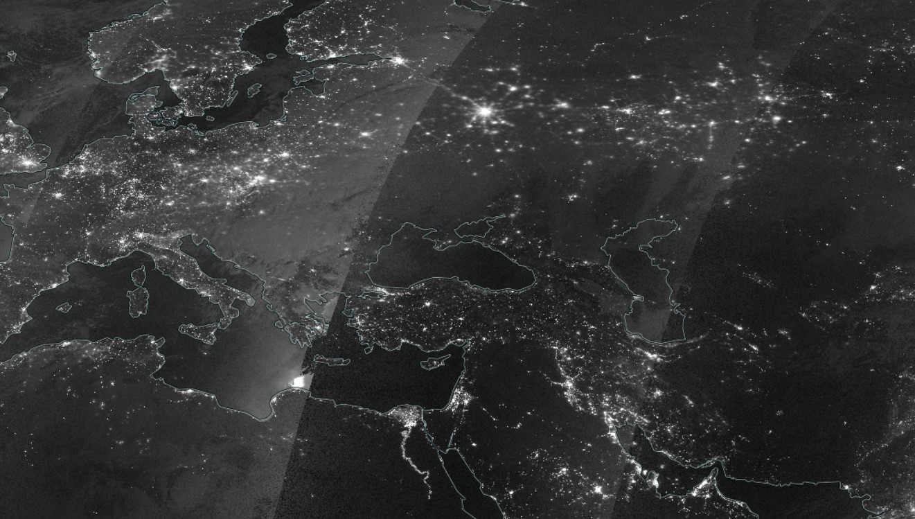 Foto göstərir ki, Ukrayna ərazisində demək olar ki, işıqlı nöqtə və ləkə yoxdur.