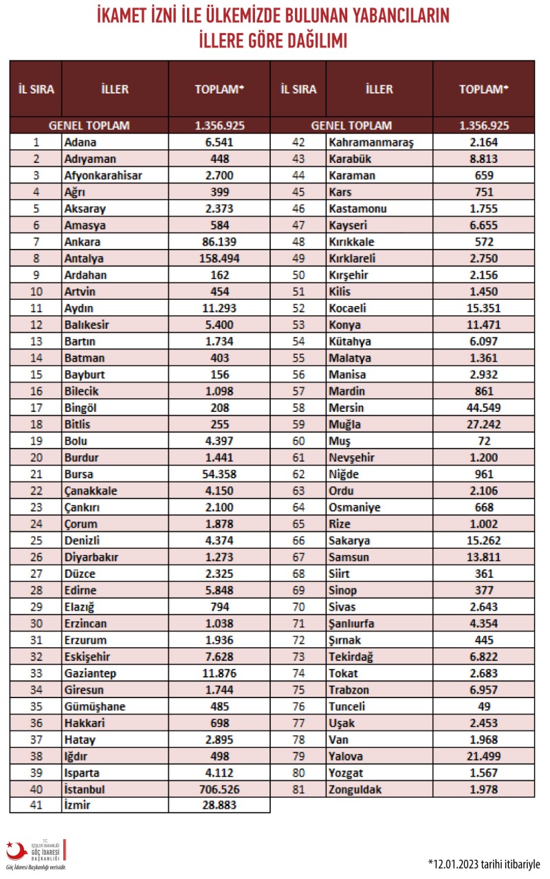 Türkiyədə yaşamaq icazəsi olan əcnəbilərin ümumi sayı 1 milyon 354 min nəfəri keçib. Azərbaycanlılar ölkədə qohumluq əlaqələri və ya təhsil əsasında verilən yaşayış icazələrinin sayına görə liderdir.